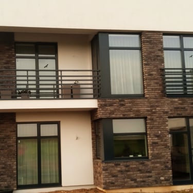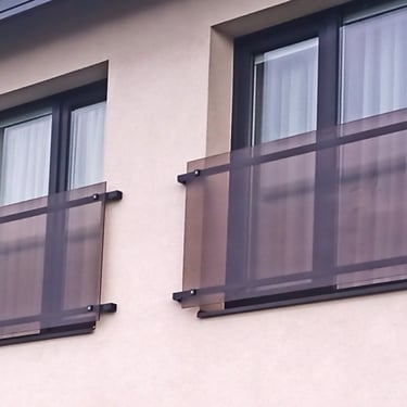 Prancūziški balkonų turėklai gaminami su įvairiais aliuminio užpildais ar su stiklu.